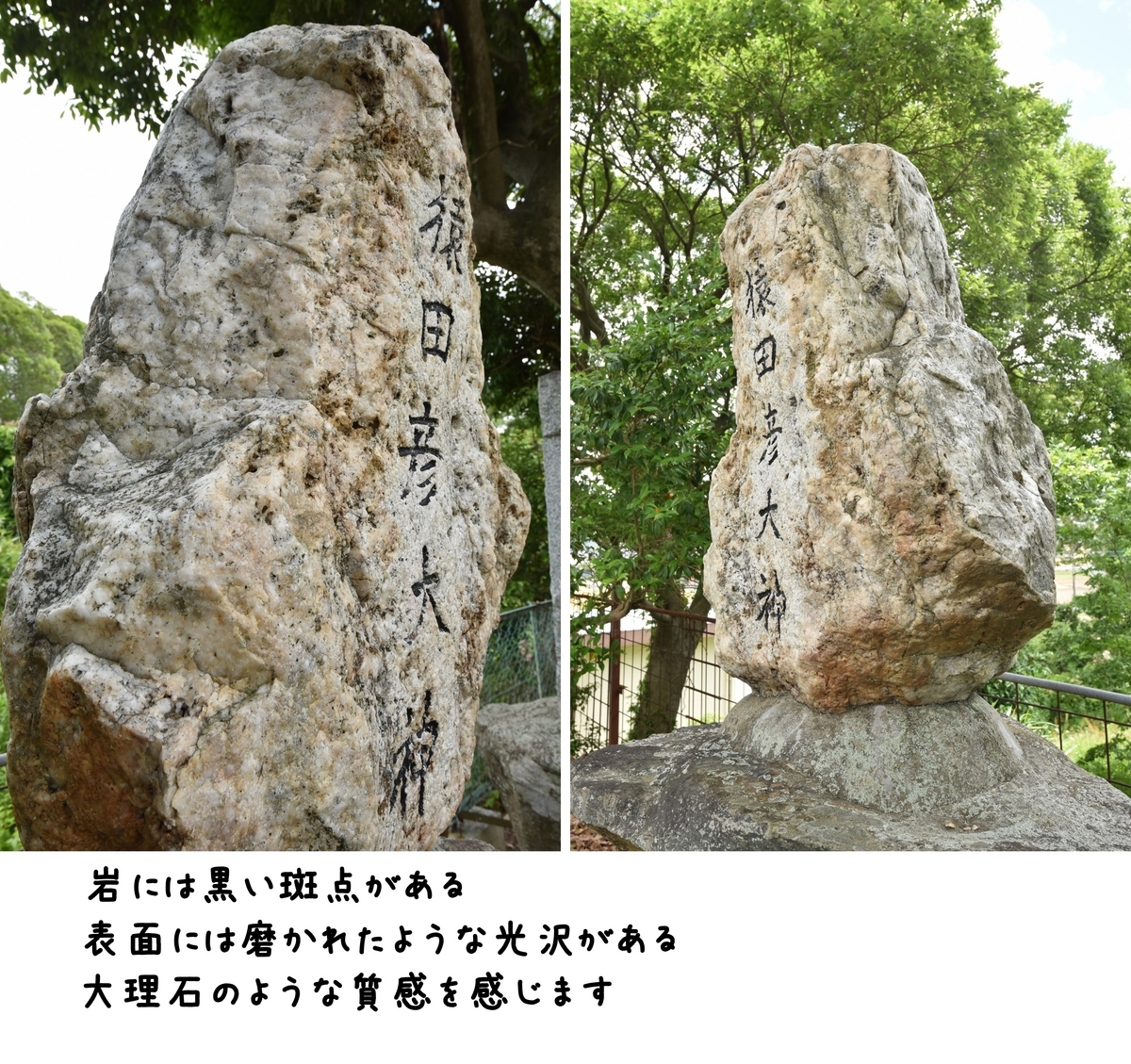 庚申塔は、おそらく石灰岩の自然石でつくられています。文字には黒い墨が塗られているために判読が容易でした。
